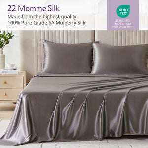 Shop complementary items to complete your silk bedding set! Add a Duvet Cover and Euro Shams or shop extra Pillowcases. Our 22 momme bedding also comes in separate Flat and Fitted Silk Bed Sheets for a truly tailored silk sets.
