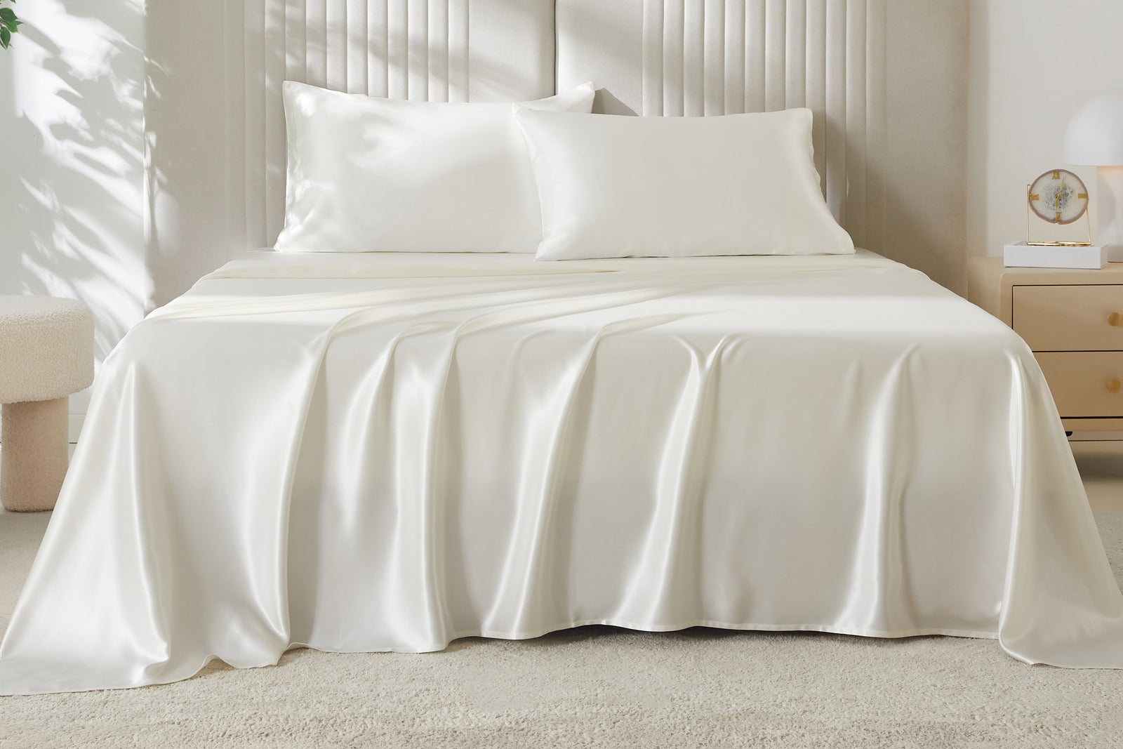 Shop our options of 19, 22 and 30 momme silk sheeting. Made of 100% Grade 6A Mulberry Silk. To read more about what momme is and which may be the best option for you, Click Here.
