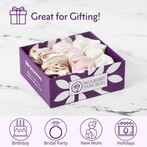 Sink into the most luxurious of slumber with this dreamy duo. Wake up with fewer wrinkles, tangles, and bedhead with our 22 momme signature silk pillowcase with color-matched zipper closure, and enjoy the deepest of sleep with the light-blocking design of our 22 momme sleep mask. Our mulberry silk sleep mask comes in a generous 8" wide by 3.5" size with a comfortable silk-wrapped elastic for deep, uninterrupted sleep day or night; perfect for air, train, and car travel. Our silk pillowcase and sleep mask are handmade and crafted from 100% Grade 6A, 22 momme Mulberry silk.