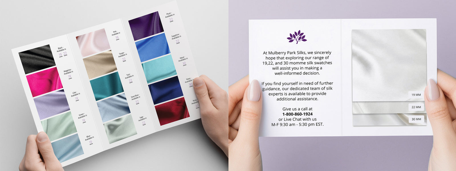Our sheets and accessories come in a three weights, 19, 22 and 30 momme. The weight of the fabric is a bit difficult to get a true feel for from a small color sample cutting. This is why we now also have a Momme card option that has a 4" square piece of each momme included to get a better feel for the fabric.