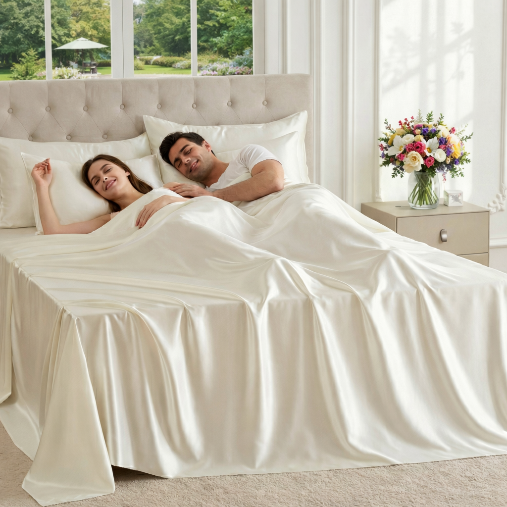 While satin is a man-made, often petroleum-based fabric that retains heat and can harbor bacteria. Silk is natural, breathable, resistant to bacteria and dust mites, and helps to regulate body temperature (especially beneficial for women experiencing hot flashes).