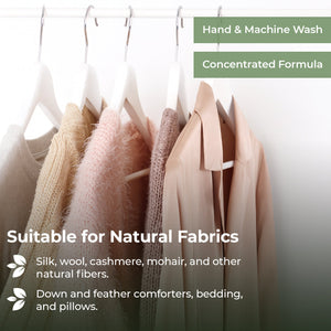 👗Made for Luxury Fabric: Use on washable silk clothing, lingerie, sheets, and bedding; wool and cashmere clothing (unlined), throws, and blankets; down feathers; furs; leather; and other natural fibers (always follow care guidelines). Restores cleanliness while maintaining the quality and beauty of fine fabric.