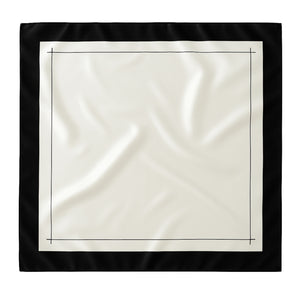 Black woman wearing an ivory silk head scarf as a headband wrap, fashionable style